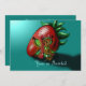 Une petite fée mignonne s'installe contre une fraise. Montré contre un arrière - plan turquoise clair à foncé. Un design mignon pour célébrer l'anniversaire d'une fille très spéciale