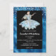 Une illustration moderne d'une belle princesse blonde portant une robe de bal holographique scintillante qui a une étole qui semble scintiller et briller autour de ses épaules. Elle est posée sur un fond bleu foncé vibrant bordé de paillettes argentées scintillantes avec des polices blanches pour votre texte personnalisé. Celles-ci sont idéales pour les fêtes d'anniversaire des filles et toute célébration d'un événement important, d'un quinzième anniversaire à un 13e, 16e, 21e ou une fête sur le thème des contes de fées.