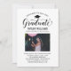 Elégante carte de faire-part de graduation et l'invitation de la fête de graduation félicite et annonce votre grade dans le style! Comprend un casquette noir, un "Graduate" en script, et un texte personnalisé moderne qui peut être personnalisé avec le nom du diplômé, l'école, et les détails de la fête. Ajoutez une photo préférée du grad. Notez que la couleur d'accent rose rose clair et poussiéreux au dos de la carte peut être changée en blanc ou en une autre couleur qui correspond aux couleurs de la photo ou de la fête.