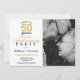 Célébrez l'anniversaire de mariage doré avec cette invitation de fête d'anniversaire de mariage de 50 ans Cheers to 50 years. Ce design présente une photo personnalisable pour insérer votre propre touche spéciale. Le dos présente une texture d'or faux dans un motif rayé.