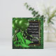 Invitation de fête d'anniversaire en or vert émeraude avec de jolies chaussures et ballons vert émeraude sur un élégant arrière - plan vert, noir et or avec des serpentins et des confettis. Ces élégantes invitations vertes pour fêtes d'anniversaire sont facilement customisées pour votre événement en ajoutant simplement vos détails dans le style de police que vous préférez.