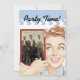 Invitation à la fête d'anniversaire avec une illustration vintage des années 1950 d'une femme tenant une photo. Customisez-le avec votre propre photo et texte. Cool rétro !