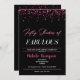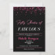 Invitation d'anniversaire pour femmes de cinquante et fabuleux avec un arrière - plan noir et confetti rose. Idéal pour 50 et fabuleuses fêtes à thème. Customisez avec les détails de votre fête.