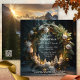 Une invitation artistique moderne à fêtes de Noël avec une couronne de neige et des ornements. Au coucher du soleil, le dos représente un tableau d'un paysage de montagne. Vous pouvez également le supprimer si vous préférez une photo personnalisée ou une couleur simple. Un modèle de code QR est ajouté pour votre commodité. Cette invitation est belle pour une fête privée ainsi que pour un événement d'entreprise.