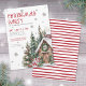 Invités Invitations à votre fête de Noël avec cette invitation à l'aquarelle élégante et festive, avec un cabine d'hiver et une scène de forêt placé dans le coin inférieur droit. Le cabine enneigé, les pins et les baies sèches créent une atmosphère de vacances chaleureuse et accueillante, avec une couronne sur la porte et de la fumée qui s'élève de la cheminée. Tout le texte est justifié pour un look propre et moderne, en utilisant un mélange de polices rouge et noire. De délicates illustrations de flocons de neige sont disséminées dans l'invitation, ajoutant une sensation douce et hivernale tout au long de la conception. Idéal pour vos réunions personnelles, vos événements d'affaires ou vos journées portes ouvertes. Toutes les polices, le libellé et les couleurs peuvent être customisés pour convenir à votre célébration. Disponible sous forme d'invitation imprimée ou de fichier numérique téléchargeable pour l'impression locale ou par courrier électronique.