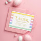 Un arrière-plan à rayures pastel lumineuses avec une mise en page de texte simple et une typographie festive "Pâques" en or. Personnalisez le titre de l'événement pour le brunch de Pâques, la chasse aux œufs ou la fête de Pâques. Tout le texte est modifiable sauf le "Pâques" central en or. La couleur de l'arrière-plan est personnalisable.