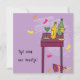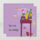 carte invitant à la fête. représentation de la table avec des bouteilles et de la lila en verre. Le texte peut être modifié.