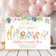 Cette mignonne invitation à l'anniversaire comprend des animaux safari à l'aquarelle avec des accents floraux et foliaires et des confettis en feuille d'or.