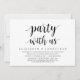 Carte d'invitation de mariage en fuite sur le thème de l'écriture moderne (Fête avec nous). C'est parfait pour votre dîner de mariage en fuite décontracté au bord du lac, dansant et fête.