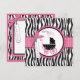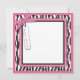 Poussette bébé et carte de style de boutique avec des accents rose chaud et une impression zèbre et pois.