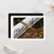 Carte Brown et blanche de la fête de remise des diplômes avec un diplôme et l'année de graduation dessus. Le dos est un arrière - plan noir avec des lettres blanches pour les invitations à la fête de remise des diplômes.