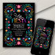 Mariachi, margaritas et souvenirs ! Lancez la fête avec ce design de fêtes folkloriques mexicaines. Le texte coloré et l'oeuvre d'art (dessinée à la main par Lively Scribe) donnent à ce design une ambiance fantaisiste mais élégante. Parfait pour les latins de votre vie. Ou une fête qui se trouve juste à côté du Cinco de Mayo ou de Dia de los Muertos. Commandez vos invitations imprimées et les fournitures de fête ou téléchargez vos invitations numériques dès maintenant pour une journée qu'ils n'oublieront jamais !