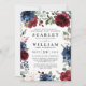 Le modèle présente une élégante couronne de fleurs aquarelles dans des nuances de rouge bordeaux, Marsala, bleu marine et rose tendre avec une mise en page typographique moderne.