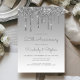 Cette invitation de fête d'anniversaire de mariage tendance pour 25 ans présente une bordure scintillante de fausses paillettes argentées et un fond ombré argent. Les mots "25e anniversaire" et les prénoms du couple apparaissent dans une écriture manuscrite grise argentée décontractée, le reste du texte personnalisable étant en police sans serif. Le même design de goutte de paillettes argentées apparaît au verso.