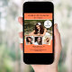 Créez votre propre collage photo unique. Utilisez quatre, 4 de vos photos préférées. Personnalisez et ajoutez un nom et des détails du parti. Un corail, un arrière - plan de couleur orange, du texte noir.