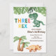 l'invitation à la fête du 3e anniversaire de trois-rex est un design mignon avec des couleurs vertes et dinosaure.