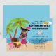 Cette invitation de fête d'anniversaire de pirate comporte une fille mignonne d'Americn d'Africain habillée vers le haut de en tant que pirate se tenant sous un palmier avec sa carte de trésor et un coffre complètement de butin de pirate.