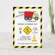 Invitation de fête d'anniversaire de construction avec une mise en page simple en noir et blanc personnalisable selon les détails de votre événement. Graphiques par PremiumClipart.