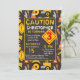 Invitation à thème de construction jaune pour la fête d'anniversaire d'un garçon avec des travaux tracteur, les cônes de la route, (sorcières casquettes) signalisation d'avertissement et d'autres équipements sur un arrière - plan gris foncé/gris. Peut être personnaliser ( si nécessaire ) en changeant le message court "venez nous rejoindre pour une route de plaisir" puis personnalisez en changeant le nom, l'âge et les détails de la fête.