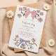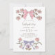 Carte d'invitation pour la fête d'anniversaire de la mignonne fille avec l'illustration des arcs et des fleurs aux couleurs rose et violet.