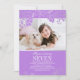 Une invitation pour les enfants à la fête d'anniversaire de la photo présente des fleurs en feuille d'argent (effet) et l'arrière - plan couleur violet lavande. Invitations de fête d'anniversaire élégants et modernes.