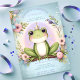 La carte présente une charmante illustration d'une princesse de grenouille souriante, ornée d'une petite couronne, assise contentement sur un rondelle au milieu d'un jardin d'imaginaires. Un arc-en-ciel pastel jette une douce lueur derrière elle, ajoutant à l'atmosphère fantaisiste. Des fleurs roses et bleues douces, ainsi que des créatures de jardin conviviales, créent une scène sereine et accueillante. Ce design enchanteur est parfait pour une fête d'anniversaire d'enfant avec un thème de conte de fées ou de princesse.