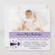 Invitation à une fête d'anniversaire pour bébé fille ladybug à pois violets.