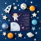 Invitations de fêtes anniversaires de enfants sur le thème de l'espace.