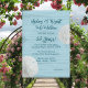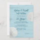 Invitation de fête d'anniversaire de mariage sur le thème de la plage avec des dollars de sable et un design en bois bleu. Le texte bleu-vert foncé est facile à personnaliser sur un fond de grain de bois bleu clair. Deux dollars de sable naturels décorent également les bords du papier. Choisissez de mettre à niveau avec l'un des papiers spéciaux proposés.