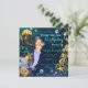 Invitation à une fête d'anniversaire de sirène avec une adorable bébé sirène avec un diadème en diamant et une perle sur un magnifique fond de mer étincelant bleu et or. Cette belle invitation à une fête d'anniversaire de sirène sous la mer est facilement personnalisable pour votre événement en ajoutant simplement vos coordonnées dans le style de police et la couleur et la formulation de votre choix. il s'agit d'une conception imprimée sans vrais bijoux, rubans, paillettes, etc.