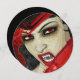 Une bande dessinée de fond du visage d'un beau vampire aux yeux rouges et aux lèvres qui lui barbotent les crocs entourés d'un arrière - plan sanglant. MODÈLE PERSONNALISÉ - Customisez le libellé pour convenir à votre événement unique Hallows Eve.