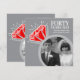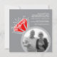 Invitez vos amis et votre famille à une fête spéciale pour vos 40 ans de mariage ou à une célébration de dîner avec ces invitations graphiques grises, rouges et blanches représentant un anneau d'éternité rubis avec deux photos. Personnalisées avec vos propres photos du jour de votre mariage et une photo actuelle au verso, puis ajoutez vos propres mots de célébration, la date et le lieu de la fête. D'autres articles assortis sont disponibles. Dessin et conception graphique originale de l'anneau par www.mylittleeden.com sur zazzle.
