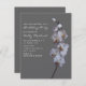 Une invitation moderne et sophistiquée à la fête d'anniversaire pour adultes sur du papier métallique montrant une image d'orchidées juste au-dessus d'un arrière - plan gris foncé. Personnalisez le texte blanc à gauche avec les détails de votre occasion.