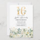 Invitation Fête d'anniversaire des seize ans aux fleurs verte