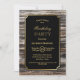 Une invitation d'anniversaire en bois bordée d'or rustique avec du texte en or sur un arrière - plan noir.