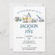 Une belle invitation avec d'adorables camions de construction et des crevettes en aquarelle - une façon amusante de célébrer l'anniversaire de votre petit.