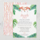 Invitation Fête d'anniversaire Flamant rose rayure de feuille