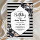 Invitation Fête d'Anniversaire Floral Noir Moderne