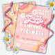 Invitations super à la fête d'anniversaire hippie. Caractéristiques de la puissance des fleurs Daisies, arc-en-ciel psychédélique et des polices rétro des années 60 ou 70. Couleurs pour rose doux, terre cuite, moutarde et blanc. Pour apporter d'autres modifications, accédez à Personnaliser ce modèle. En bas, vous verrez "Vous voulez customiser encore plus ce design ? Cliquez sur EDIT à l'aide de l'outil Design. Il faudra un peu d'apprentissage, mais vous pouvez changer certaines polices et certaines couleurs, déplacer les choses ou supprimer ce dont vous avez besoin. Tu vas en prendre le coup.