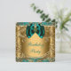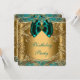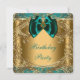 Magnifiques volutes dorées carte d'invitation modèle pour fête d'anniversaire en jade et or. Cette invitation de fête d'anniversaire élégante en bleu sarcelle, jade et or est facilement personnalisable pour votre événement en ajoutant simplement les détails de votre événement, le style de police, la taille et la couleur de la police, ainsi que le texte. Veuillez noter que tous les autocollants, cartes et modèles d'invitation que vous trouverez sur Zazzle sont des graphiques imprimés sans véritables bijoux, rubans, reliefs, gaufrages ou pièces ou éléments ajoutés.