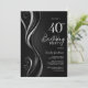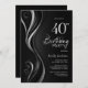 Invitation Fête d'anniversaire moderne Black Silver 40e
