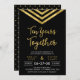 Invitation pour le 10e anniversaire moderne avec un chevron géométrique élégant et les mots "Dix ans ensemble" en or faux sur fond noir. La carte comprend un motif assorti au verso. Découvrez les articles assortis ici http://www.zazzle.com/collections/modern_faux_gold_chevron_celebration_collection-119531050277382712?rf=238364477188679314
