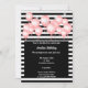 INVITATION FÊTE D'ANNIVERSAIRE NOIR STRIPE ROSE BALLOON