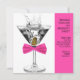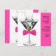 Invitation de fête d'anniversaire martini pour femme. Cette invitation de fête d'anniversaire martini et nœud papillon rose chaud fonctionne très bien pour une fête d'anniversaire de femme, une retraite, un événement noir cravate d'entreprise, une fête martini ou une soirée de filles. Ajoutez vos détails au recto et/ou verso de cette invitation élégante de fête d'anniversaire martini et nœud papillon rose en ajoutant les détails de votre événement, le style de police, la taille et la couleur de la police, et le libellé.