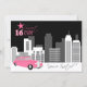 © Socialite Designs. Une invitation de fête d'anniversaire pour les seize ans avec une superbe limousine rose dans la ville. Personnalisez avec les informations de votre fête.