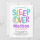 Personnalisez cette invitation d'anniversaire amusante pour une soirée pyjama avec vos propres détails !