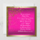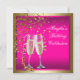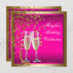 Invitation de fête d'anniversaire rose et or pour femme avec des volutes dorées élégantes et des verres à champagne.