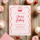 Faites de votre fête un plaisir extraordinaire avec notre invitation à la fête d'anniversaire Pink & Red Cherry! Cet invitation adorable et personnalisable présente des graphismes de cerise ludiques dans des tons rose et rouge vif, parfait pour un bain d'anniversaire amusant, d'inspiration rétro, sur le thème des fruits. Conçu avec une zone centrale propre pour votre texte personnalisé, il est idéal pour ajouter tous les détails de la fête. Que vous fêtiez l'anniversaire d'un enfant ou que vous planifiez un rassemblement festif, cette invitation donnera le ton pour un événement délicieux et mémorable. Commandez maintenant sur Zazzle et commencez votre célébration correctement!