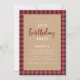 Invitation Fête d'anniversaire rustique de manuscrit de plaid