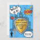 Fête d'anniversaire Superhero Invitation, bleu, jaune, rouge avec éclair de bande dessinée